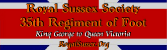 The 35th Regiment was the only regiment to wear orange facings, a special honor bestowed by King William III--the Prince of Orange. The regiment was raised in Ireland in 1701 and served in the French & Indian War, the American Revolution, French Revolutionary & Napoleonic Wars, Indian Mutiny, Egyptian War, a host of small colonial conflicts, the Boer War, WWI, WWII, Korea, and Aden. It was amalgamated in 1966. We are proud to maintain friendly relations with the Royal Sussex Association in the UK today.